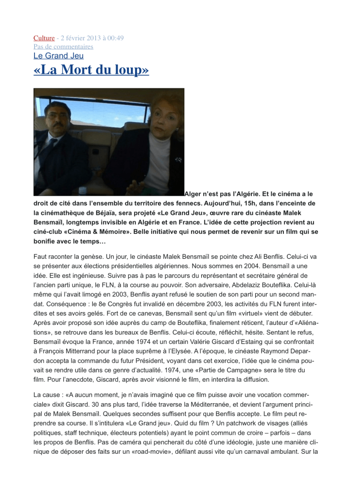 J’ai eu l’occasion d’écrire un article sur cette expérience qui a été publié au printemps 2013 dans le numéro 3 de la revue « Mondes du cinéma » :