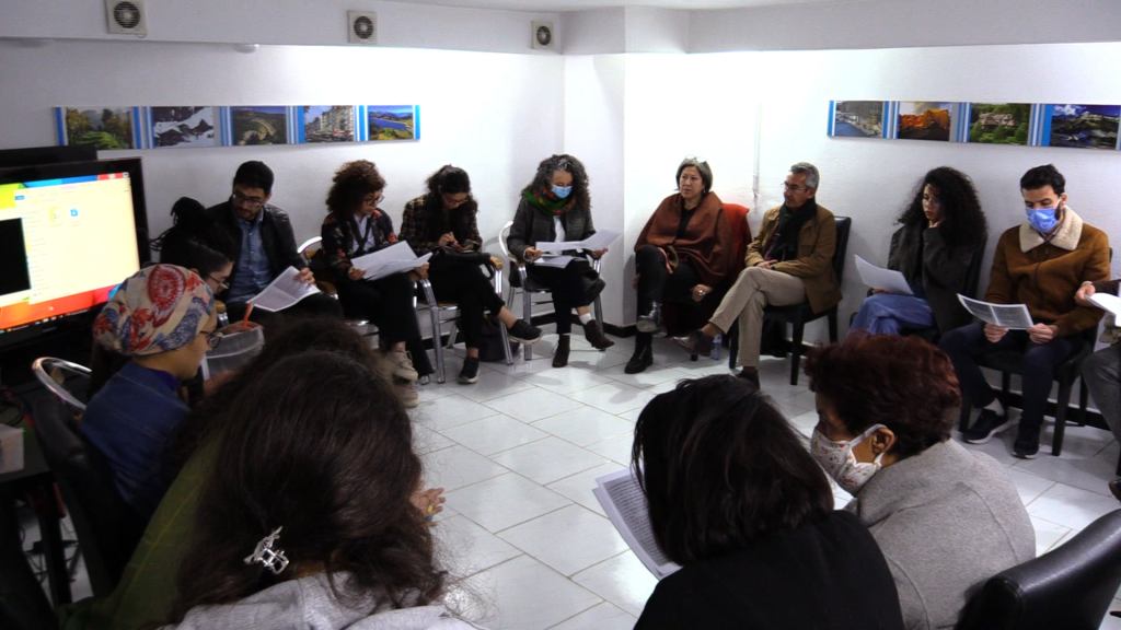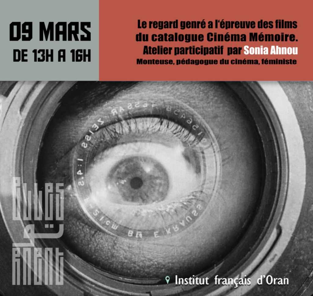 Les organisatrices des Journées du film de femmes d’Oran m’ont donnée carte blanche à l’occasion de leur première édition. J’ai proposé de mener un atelier théorique participatif sur la problématique du genre dans le cinéma documentaire, un sujet de recherche sur lequel je travaillais déjà pour le projet Imagine. Il s’agissait de proposer mes hypothèses de travail à un groupe de volontaires et de faire évoluer ensemble nos réflexions à partir d’un corpus d’extraits de films et de textes. La séance a durée 4 heure et a réunie une vingtaine de personnes.